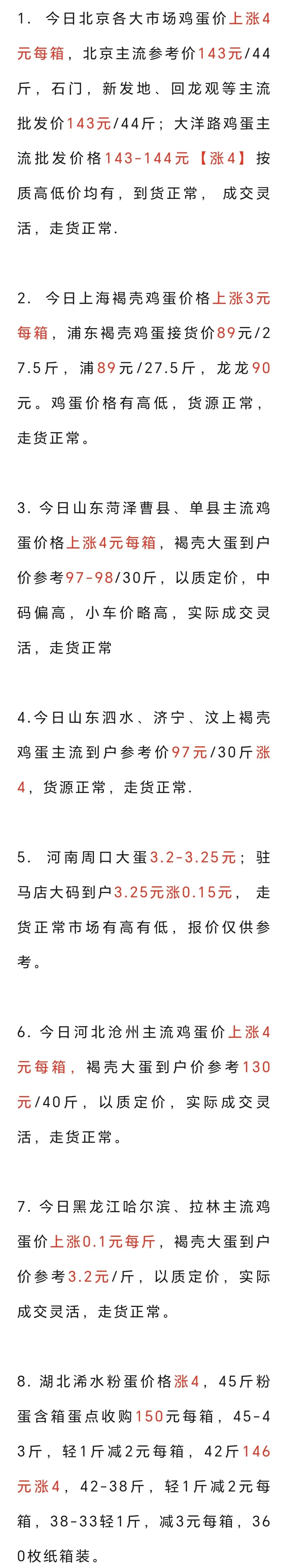 元月8日各地鸡蛋价格(普涨) 养羊网 2026-01-09 元月8日各地鸡蛋价格(普涨) 养羊网 2026-01-09 上一篇:猪价大预测】1月10日~1月13日全国猪价大预测! 下一篇:猪价预测:短期内“北强南弱”,下半年拐点可期! 您可能还会对下面的文章感兴趣111: 相关文章 广安第一家地摊烤羊出摊了 他就是借题发挥,要让你崩溃! 2025年4月13日全国各地生猪价格信息 一号文件点出赚钱门道 未来农村干什么最赚钱?
