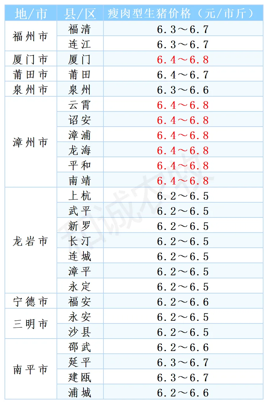 【猪价】2026.01.09福建各地区每日最新猪价点击上方"蓝字" 关注我们吧! 温馨提示 红色数字表示与昨日相比增长 2026.01.09 转载请注明出处!