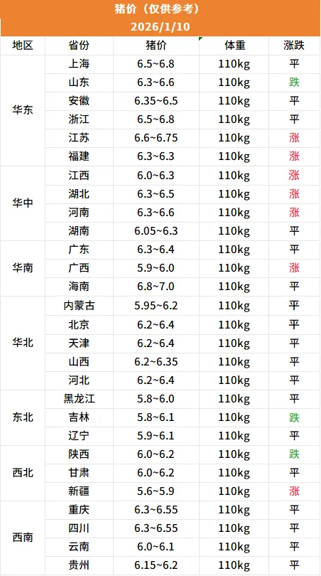 1月10日猪价 | 大场缩量,猪价稳中偏强!