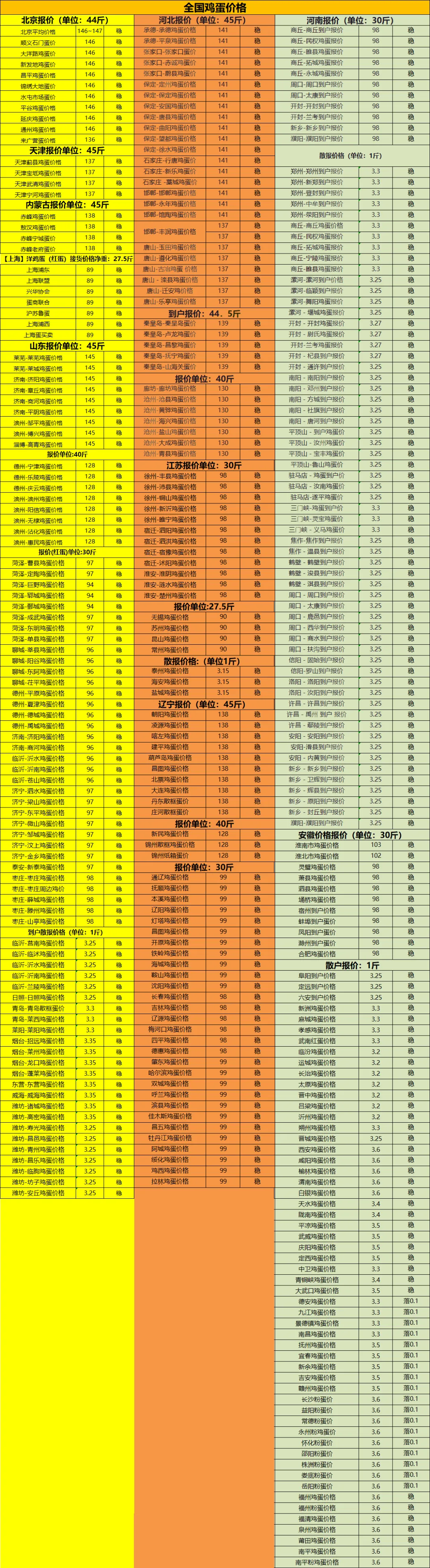 1.10全国鸡蛋价格 养羊网 2026-01-10 1.10全国鸡蛋价格 养羊网 2026-01-10 上一篇:【超前猪价】1月11日:火力全开,猪价上涨“势如破竹”! 下一篇:【2026.1.10】今日威县鸡蛋价格 您可能还会对下面的文章感兴趣111: 相关文章 星露谷物语 养老又简单! 绵羊流攻略?? 一个男人发家需要多久? 2025年4月13日全国各地生猪价格信息 2025年4月13日全国各地生猪价格信息