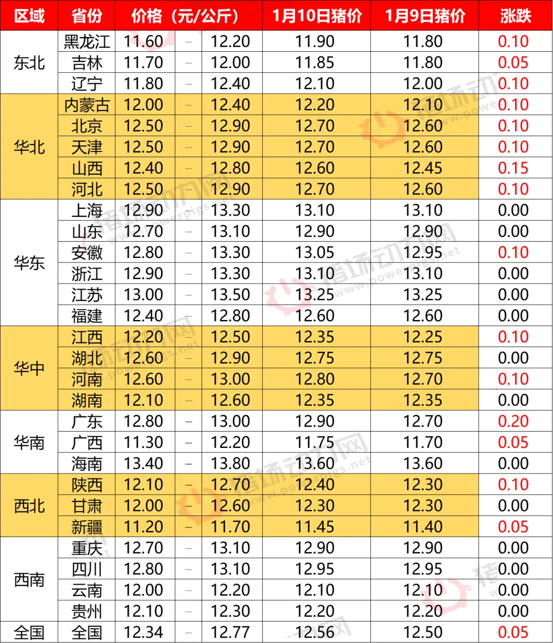 1月10日全国猪价整体上涨【动力猪价】