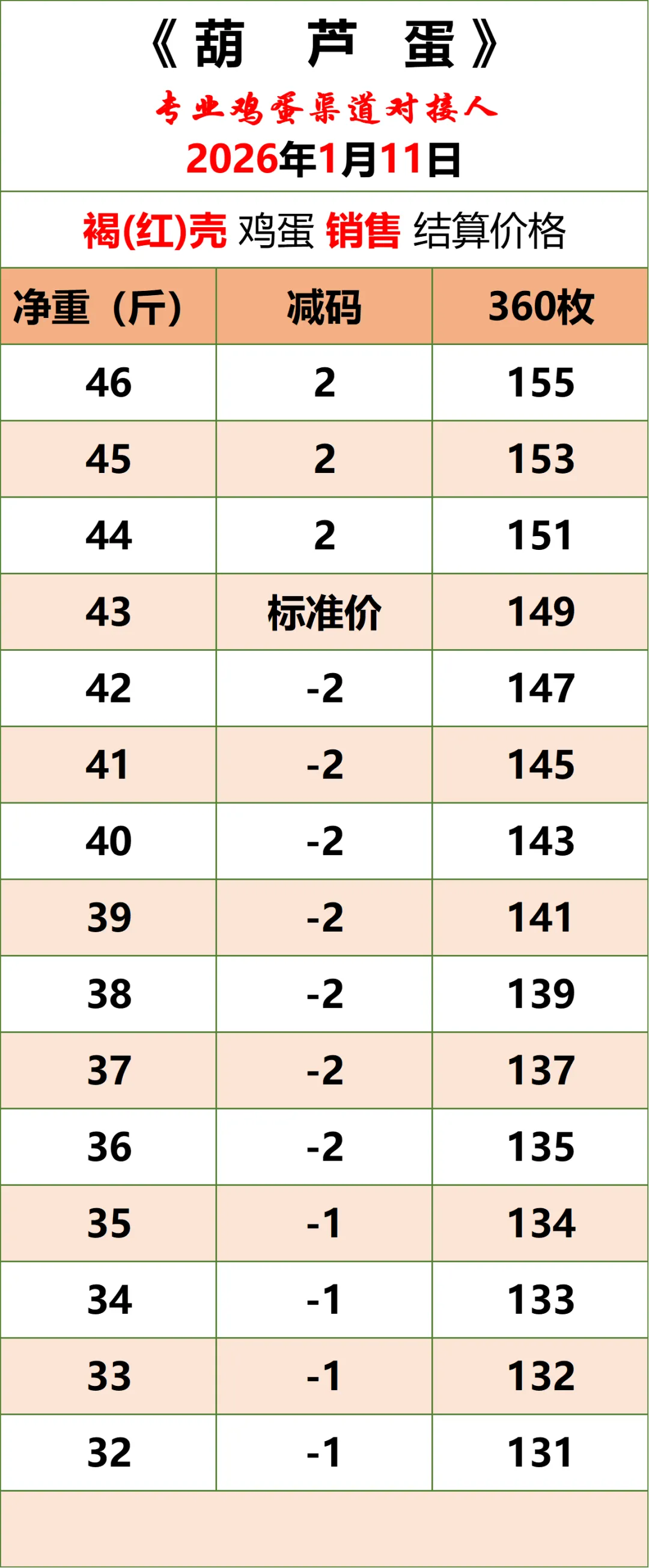2026年1月11日《葫芦蛋》鸡蛋价格