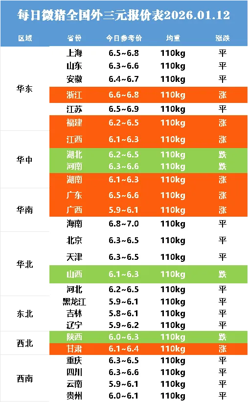 明日最新猪价2026.01.12点击蓝字关注 猪价不错过