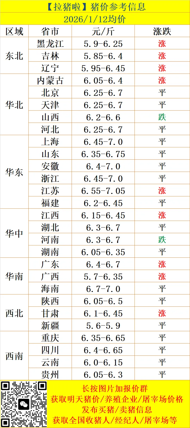 【拉猪啦】1.12-猪价行情与买卖猪信息!(有涨有跌!屠宰采购难度一般!)
