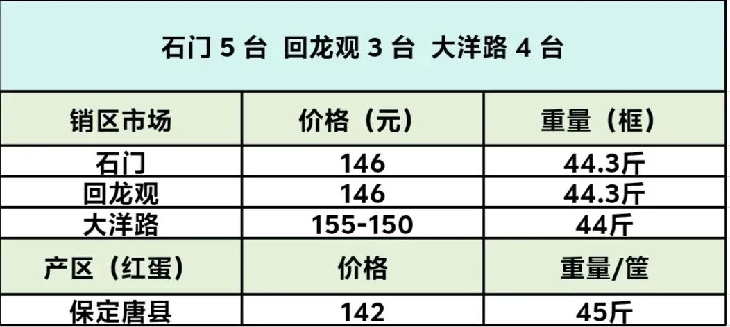 大洋路鸡蛋价格2026年 1 月 11 日报价 养羊网 2026-01-11 大洋路鸡蛋价格2026年 1 月 11 日报价大洋路 4 台 :3 大1小,价格 155-150 元,没有剩车,明天回车预计 5 台附近。 养羊网 2026-01-11 上一篇:多红!2026年1月12日猪价报价信息! 下一篇:明日(2026年1月12)鸡蛋价格预测 您可能还会对下面的文章感兴趣111: 相关文章 近期价格更新!!! 近期价格更新!!! 近期价格更新!!! 搞鸡蛋批发的怎么找新客源。