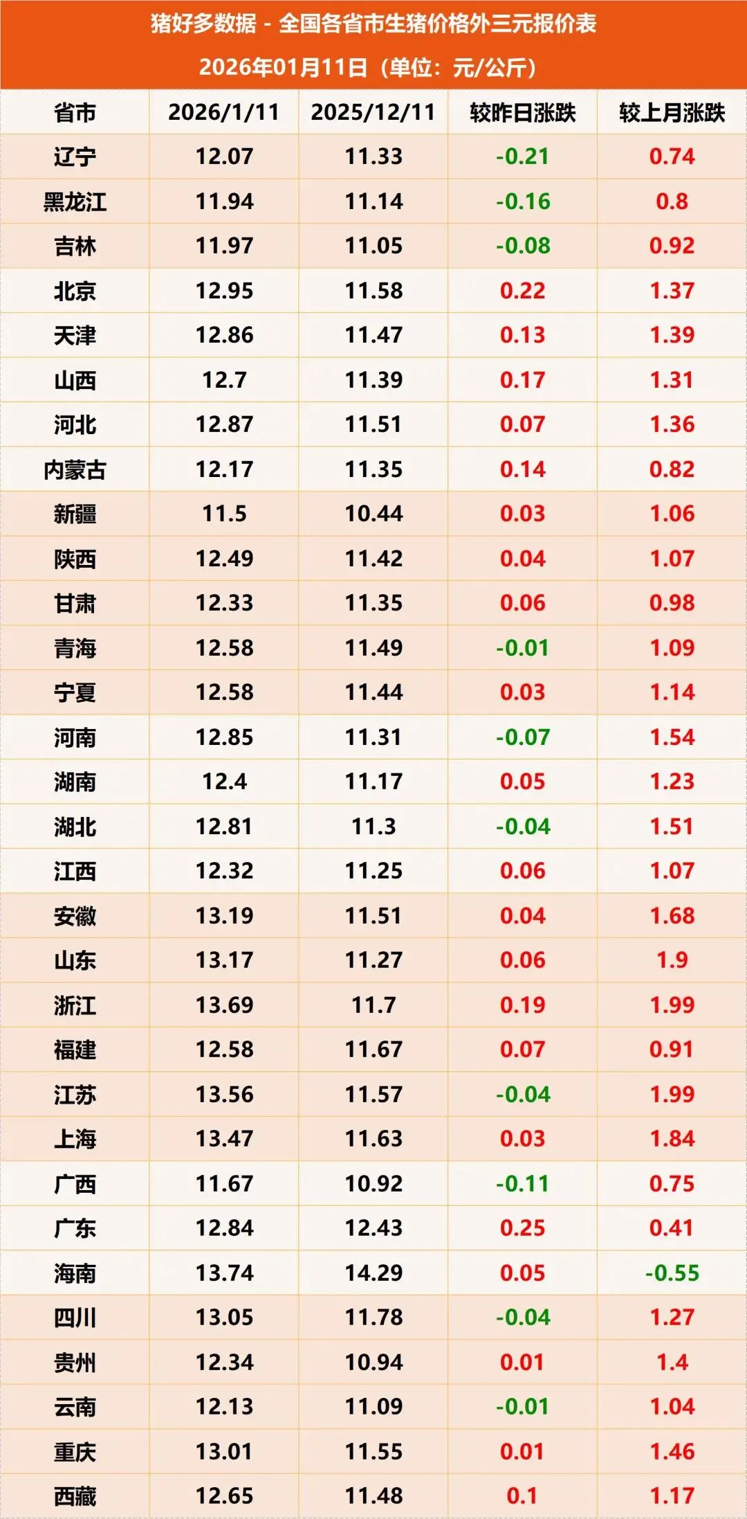 涨不停!近期猪价重心持续上移,生猪价格已经回涨至近3个月以来最高位!据猪好多数据监测显示,全国外三元生猪均价为12.60元/公斤,较昨日再上涨0.03元/公斤。就当前该猪价水平而言,与行业第一梯队养殖成本相比较,很明显成本控制较好的养殖户已经成功实现了扭亏。