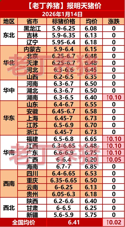 局地有涨!【明天猪价】1月14日全国猪价涨跌表!关注老丁养猪
