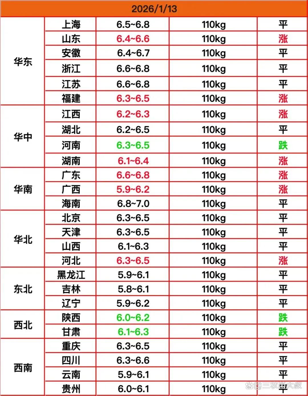 猪价“涨价翻红”!猪价“连涨不断”要彻底起飞了?2026.1.13今日生猪行情