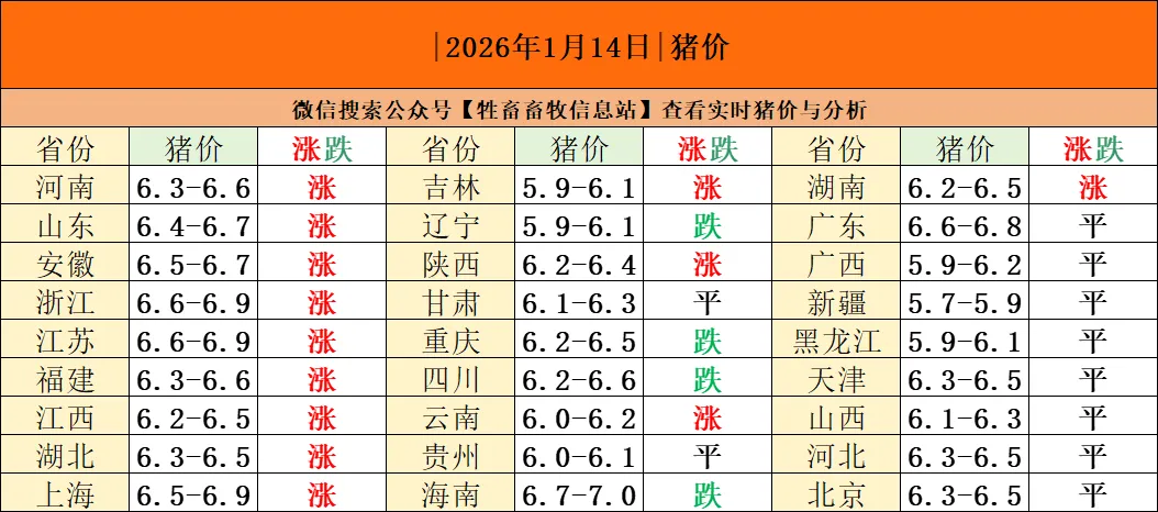 2026年1月14日猪价:南涨北稳,市场分歧又出来了!