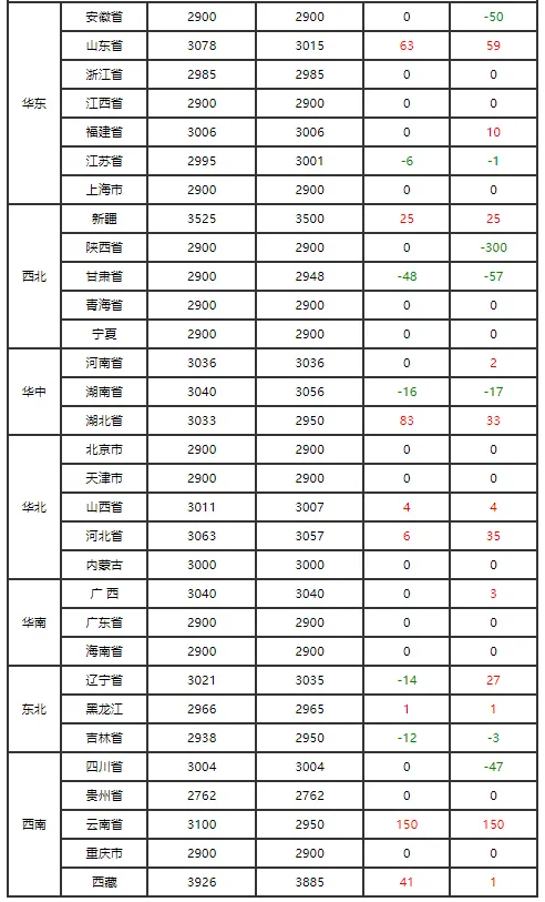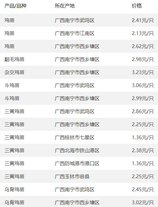白羽肉毛鸡价格整体企稳,局部小幅波动。主产区辽宁抚顺、沈阳等地均价3.93元/斤,山东临沂、滨州等产区维持3.80元/斤,江苏盐城、浙江金华分别微涨0.05元/斤,报价4.45元/斤、5.00元/斤。当前养殖端挺价乏力,屠宰端控量压价,产品库存偏高制约价格上行,短期或震荡调整。