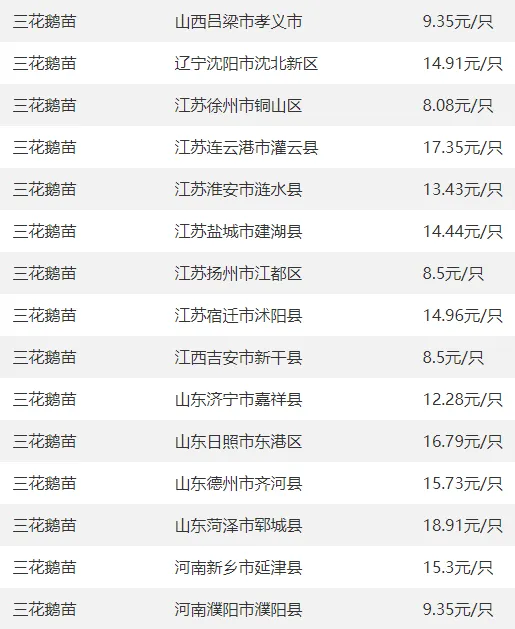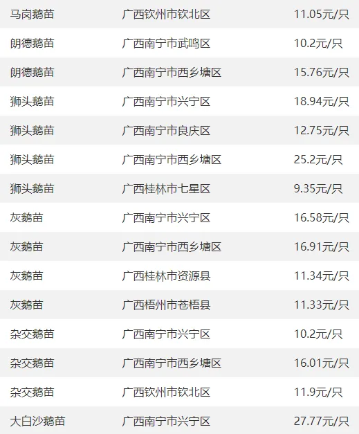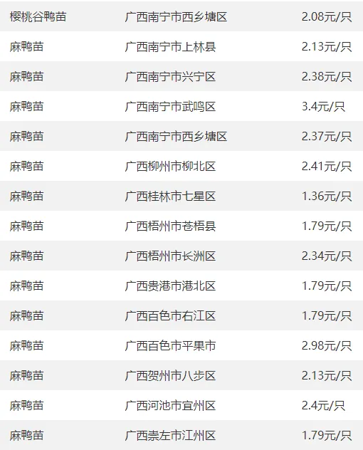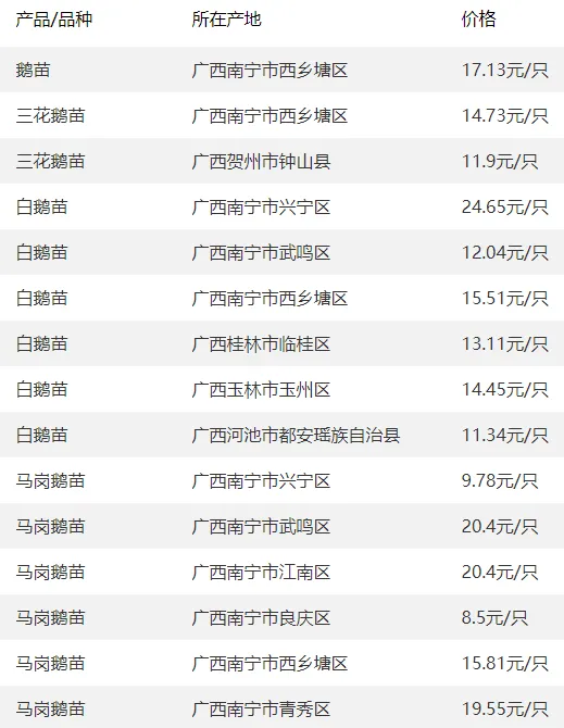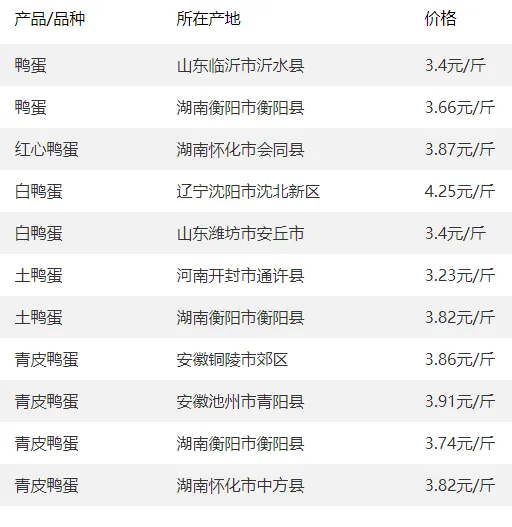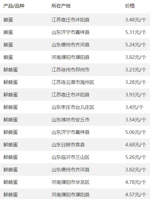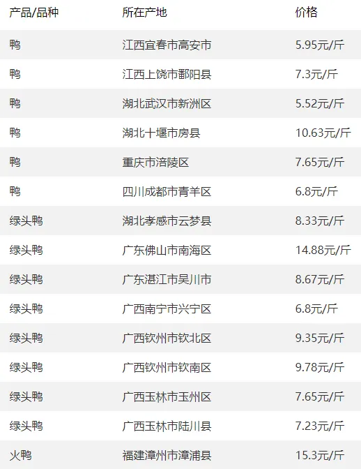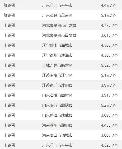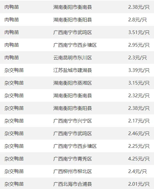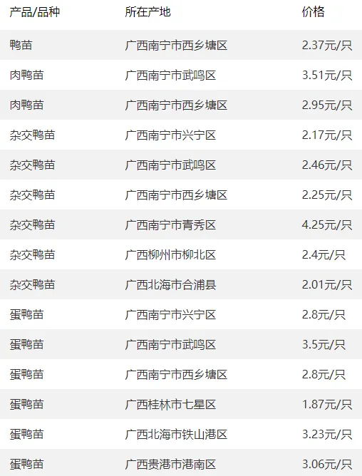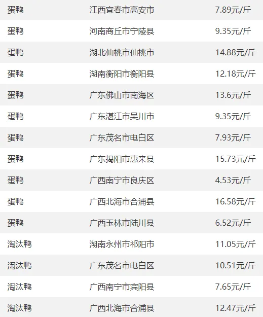 活鸭、鸭苗、鸭蛋、鹅苗等今日报价参考