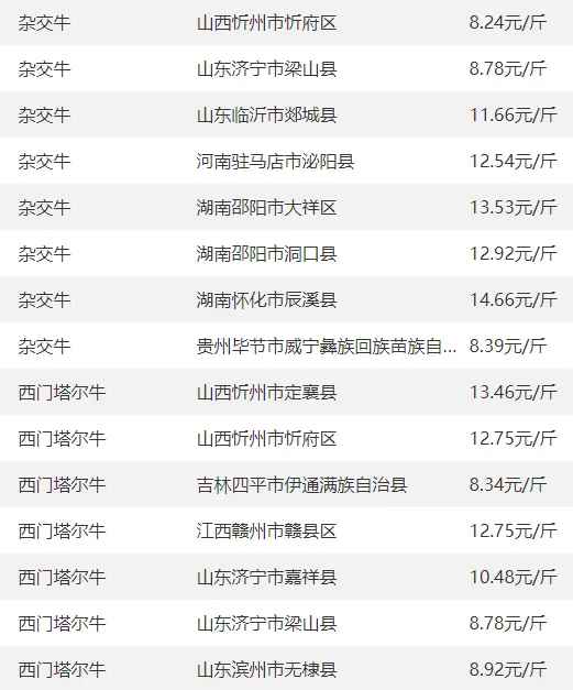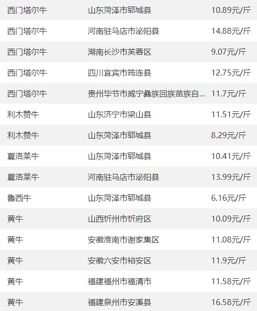 2. ?活牛均价25.7元/公斤,陕北去骨牛肉价66.17元/公斤,环比降幅最大。
