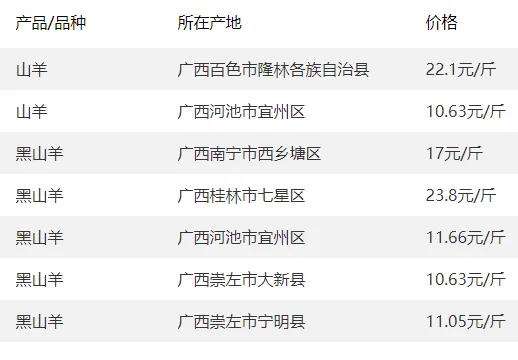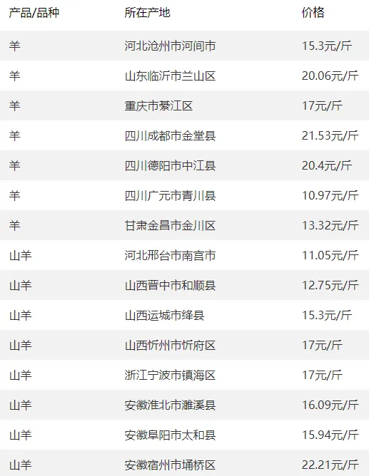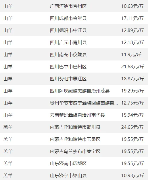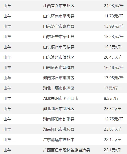 4. ?活山羊均价29.01元/公斤,关中地区带骨山羊肉价环比降0.52%。