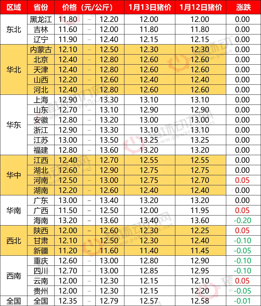 1月13日全国猪价整体企稳【动力猪价】