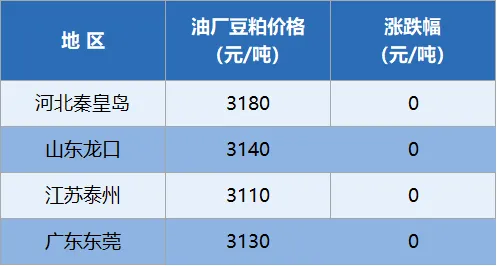 今日全国重要地区油厂豆粕(43%蛋白)价格
