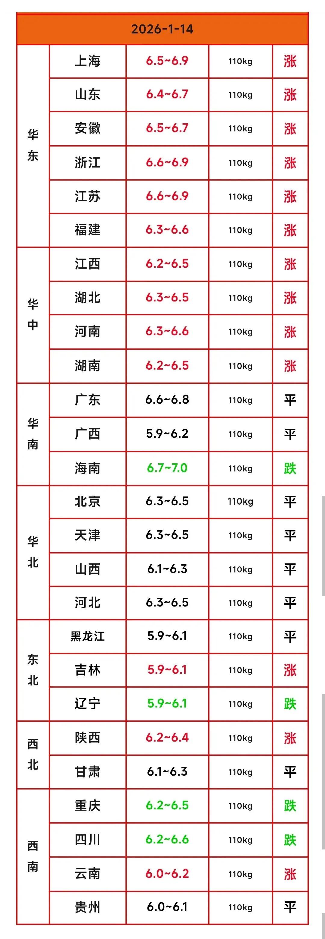 【明天猪价】1月14日最新猪价(多地飘红)↑↑↑↑↑↑点击上方蓝字“养殖人家园”添加关注,每天给您最新、最准、最及时的猪价信息
