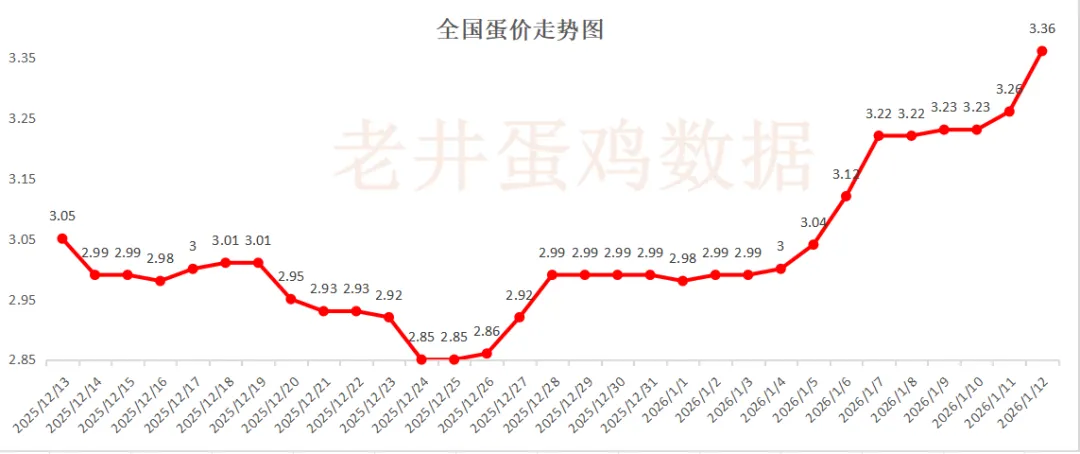 统计结果显示:昨天, 鸡蛋全国均价3.36元/斤,较前日增0.1元/斤,增幅2.98%!