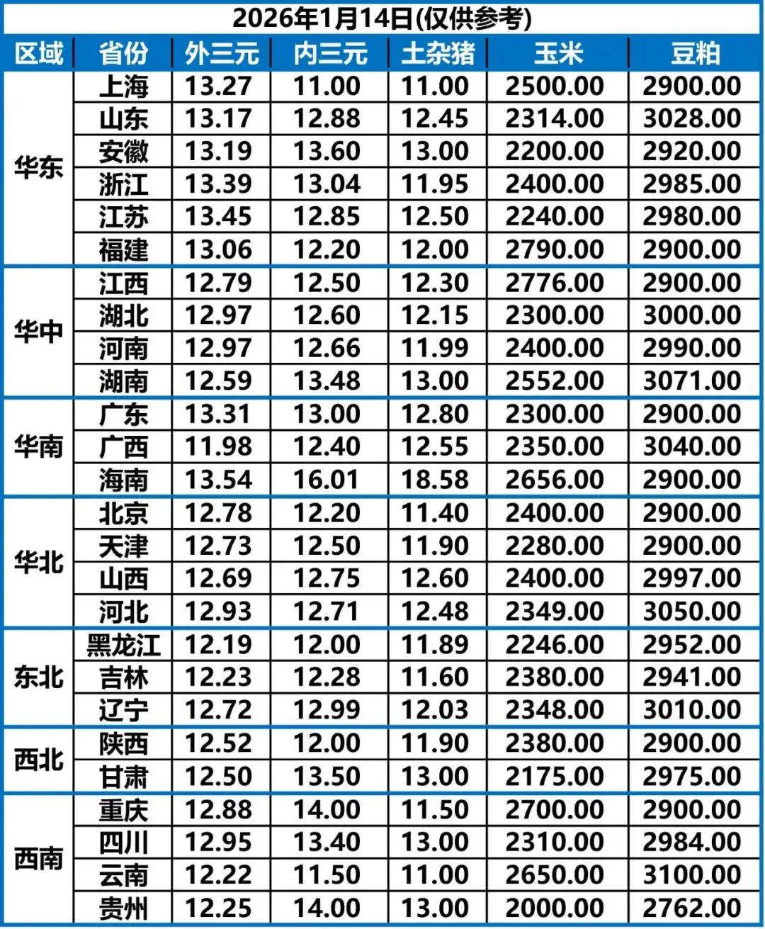 1月14日 | 正业生物猪价快报!