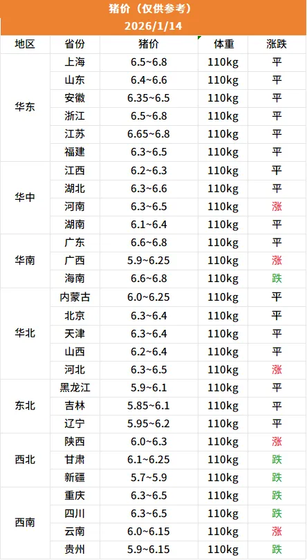 1月14日猪价 | 市场看稳居多,一哥拉涨1-2毛!