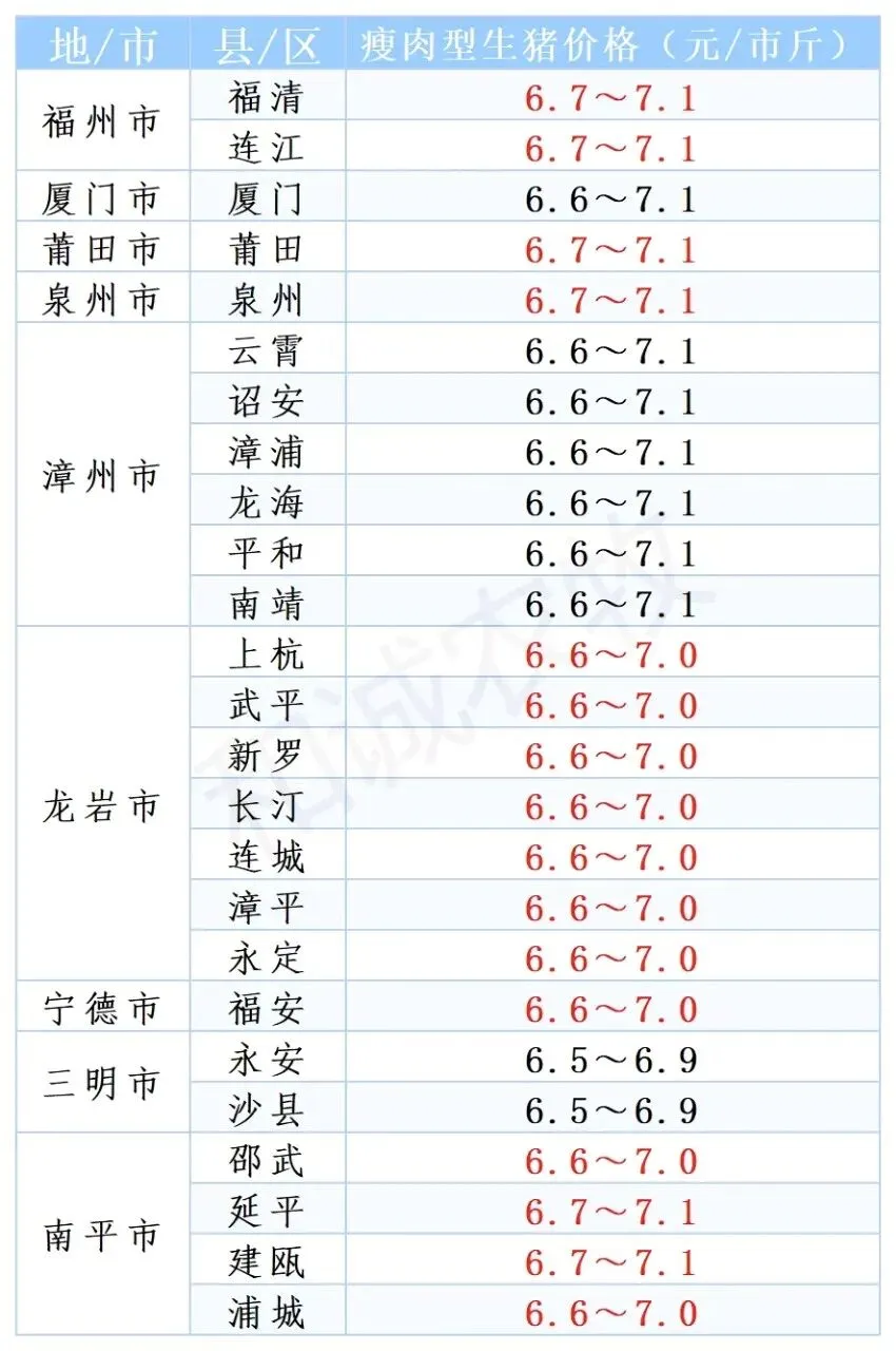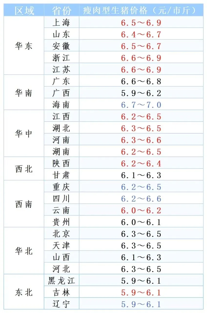 今日全国猪价情况:
