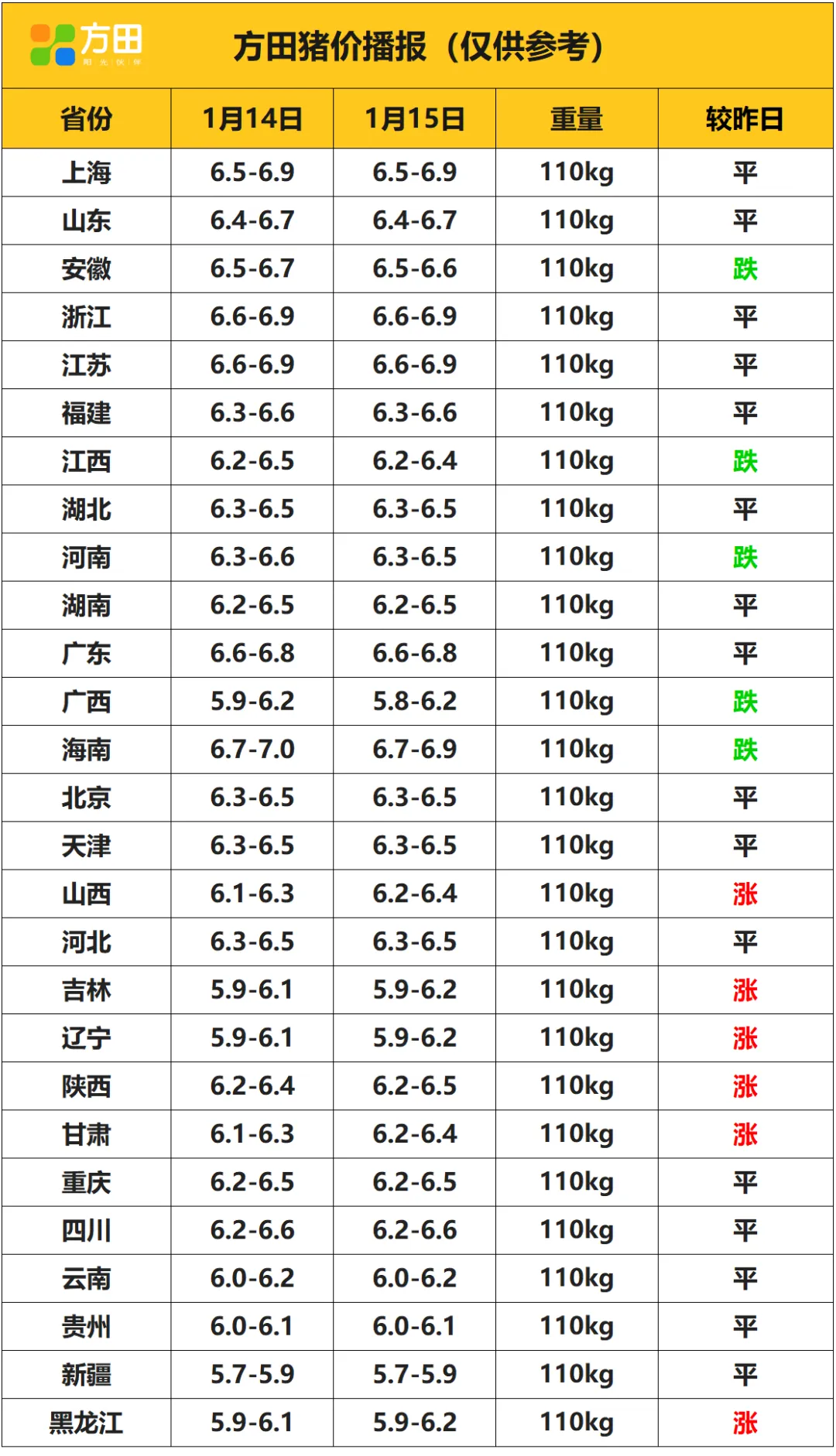 猪价丨1月15日 明日猪价早知道 养羊网 2026-01-15 猪价丨1月15日 明日猪价早知道 养羊网 2026-01-15 上一篇:2026年1月14日 鸡蛋价格, 最新蛋价行情! 下一篇:1月14日东莞信立农批鸡蛋价格 您可能还会对下面的文章感兴趣111: 相关文章 沃尔玛鸡蛋12个4.16元 啊啊啊啊啊!农村人搞钱,养猪真的能行吗? 如何挑选种羊 2025年4月13日全国各地生猪价格信息