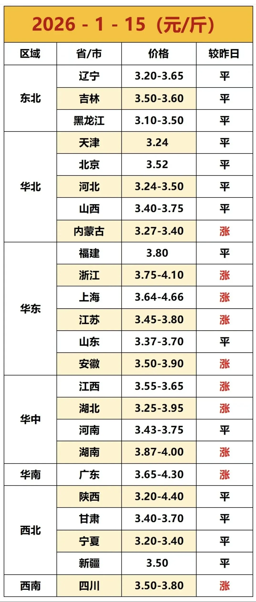 2026年1月15日全国鸡蛋价格最新走势 ? ? ? 全国鸡蛋最新价格参考: