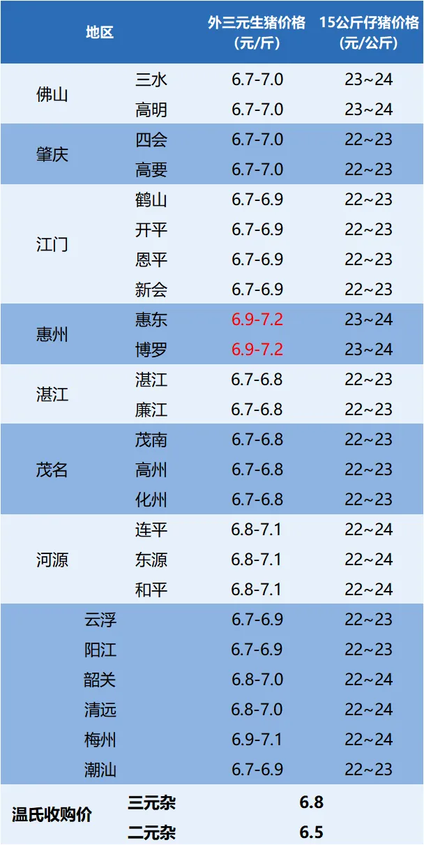 今日广东省外三元、15公斤仔猪价格