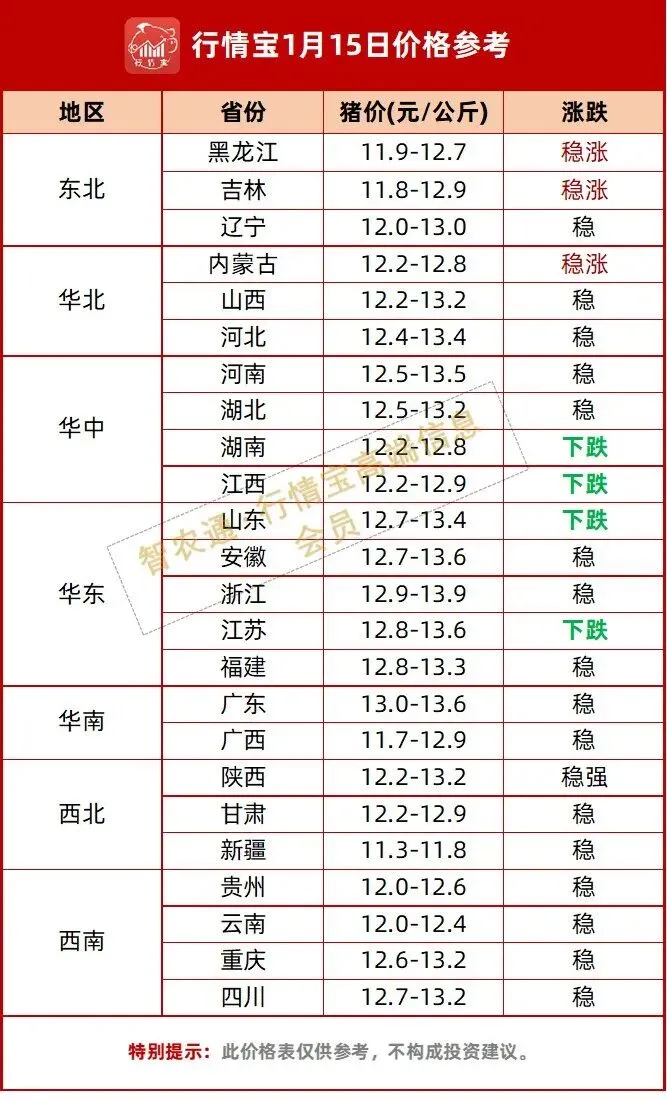 猪价北方稳涨,南方承压,下周如何操作?丨附明日1.15猪价
