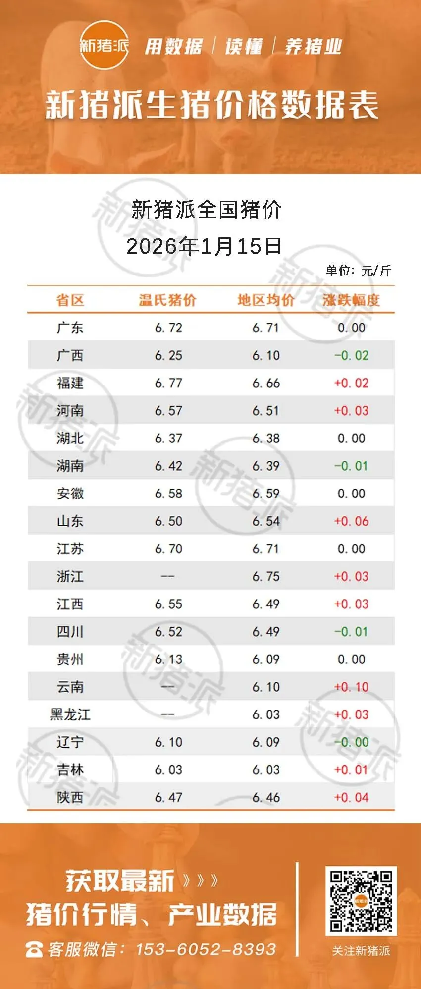 1月15日:多地猪价上涨!市场暖意融融,云南最高涨0.1元/斤【新猪派·指数】