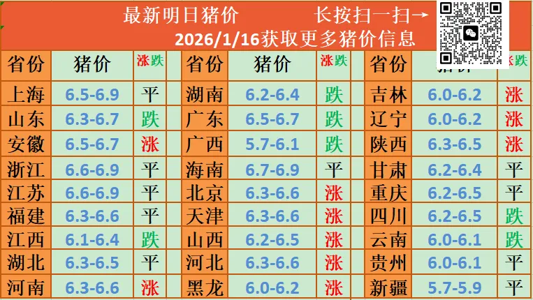 2026.1月16日-最新明日猪价( 全国猪价 !)