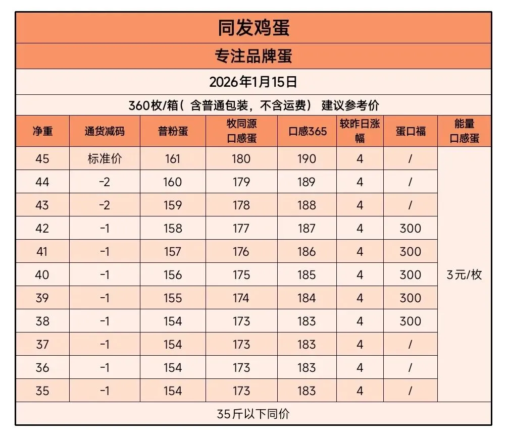 同发鸡蛋2026年1月15日价格1