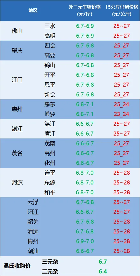 今日广东省外三元、15公斤仔猪价格