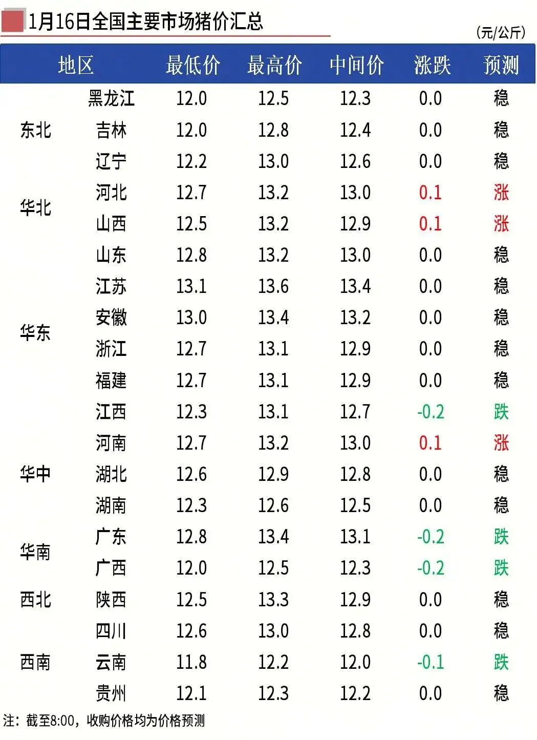 1月16日全国早间猪价【小幅调整】