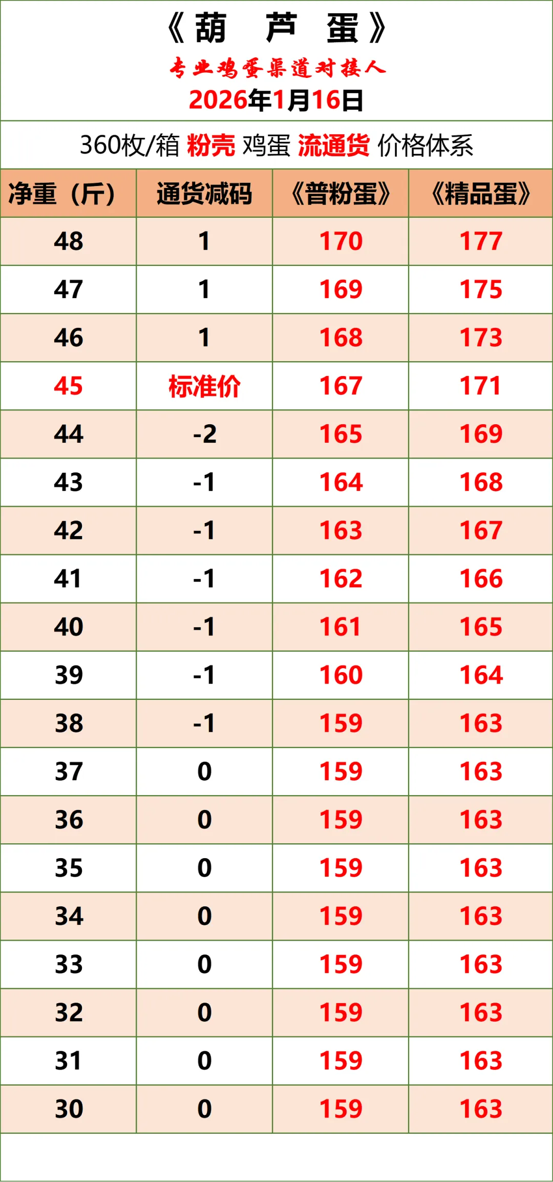 2026年1月16日《葫芦蛋》鸡蛋价格