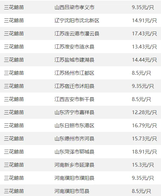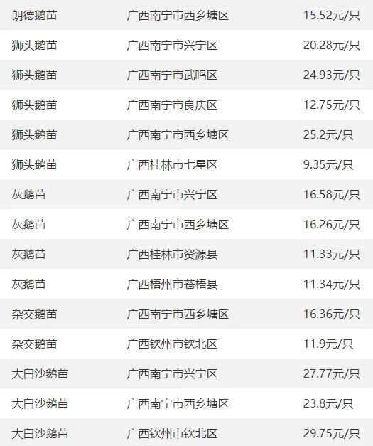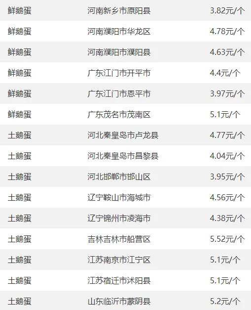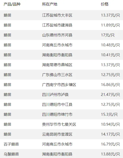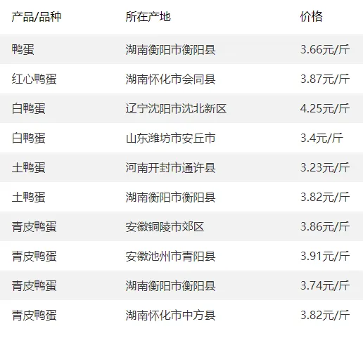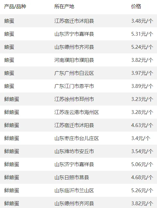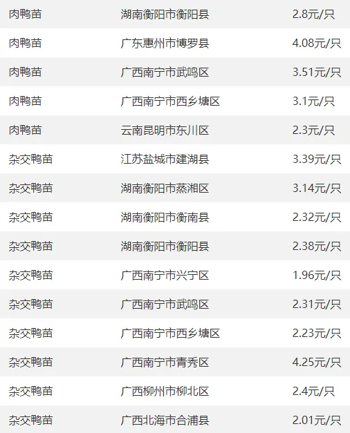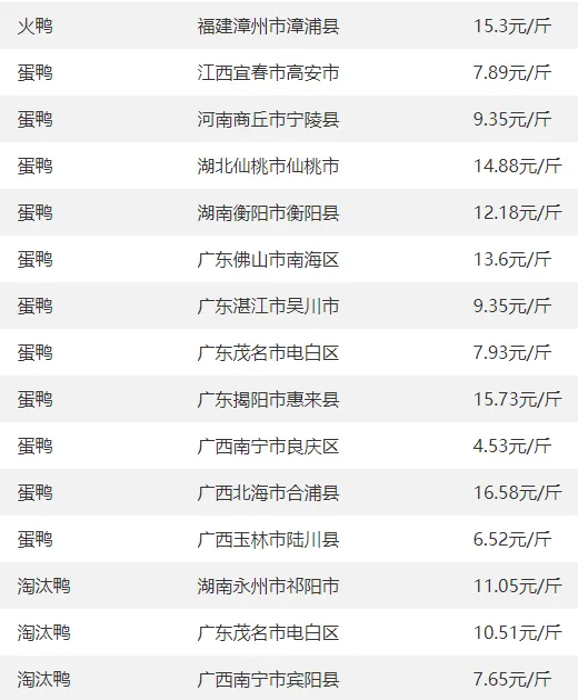 活鸭、鸭苗、鸭蛋、鹅苗等今日报价参考