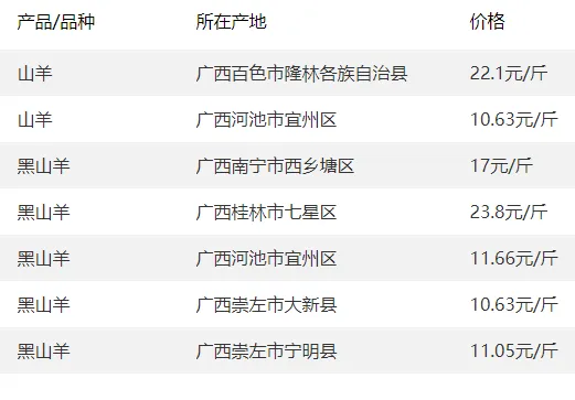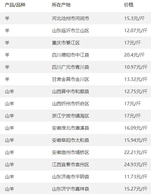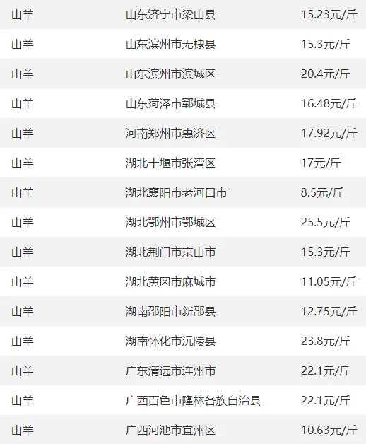 4. 山东山羊价格高位运行,报价16.0-18.0元/斤,华东地区绵羊价12.0-14.7元/斤。