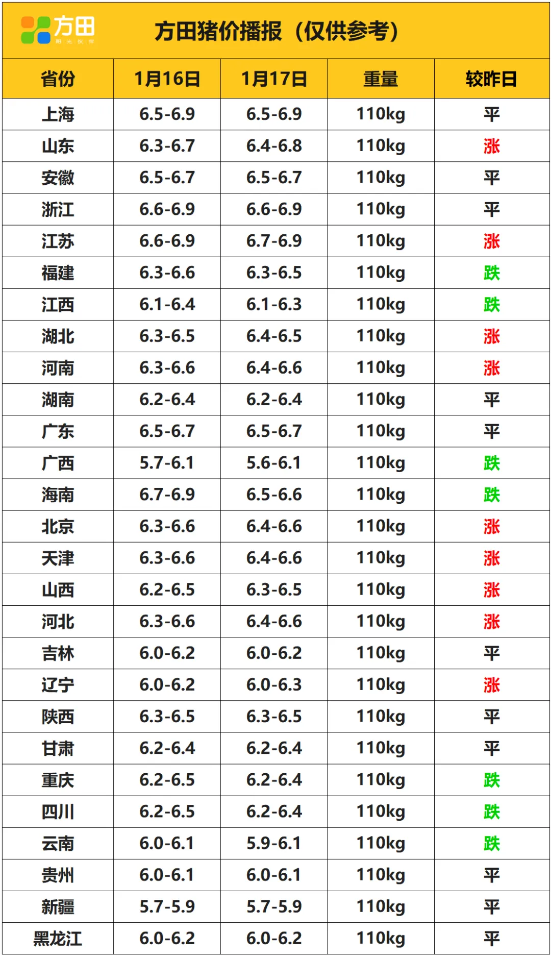 猪价丨1月17日 明日猪价早知道 养羊网 2026-01-16 猪价丨1月17日 明日猪价早知道 养羊网 2026-01-16 上一篇:1月17日 全国猪价早知道! 下一篇:【明天猪价】2026.01.17全国猪价(猪价持续震荡上涨!) 您可能还会对下面的文章感兴趣111: 相关文章 1299元一只,年赚60万 有没有想尝一下内蒙羊肉的 什么样的行业是好的行业? 这才是发展中国家的物价?