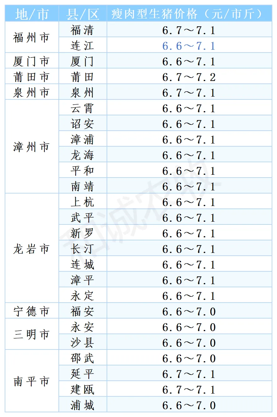 【猪价】2026.01.17福建各地区每日最新猪价