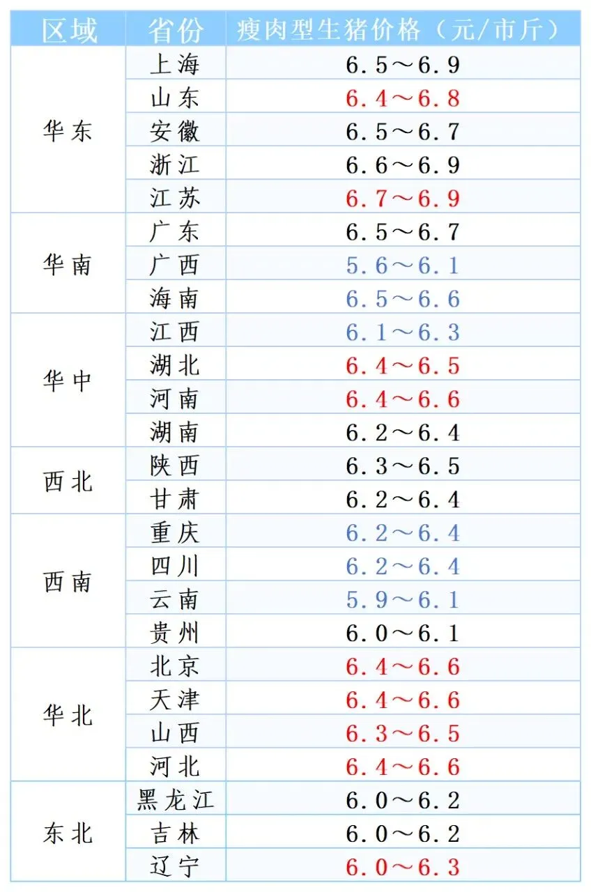 今日全国猪价情况: 10涨9平7跌,上涨省市增加0个, 下跌省市减少0个,有0省市突破8元,?有0省市跌破5元;?