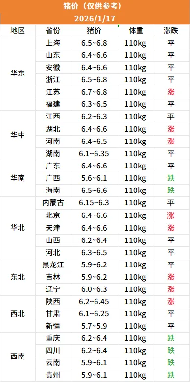 涨!涨!涨!1月17日猪价 | 北方连涨,标猪、中大猪表现较好!