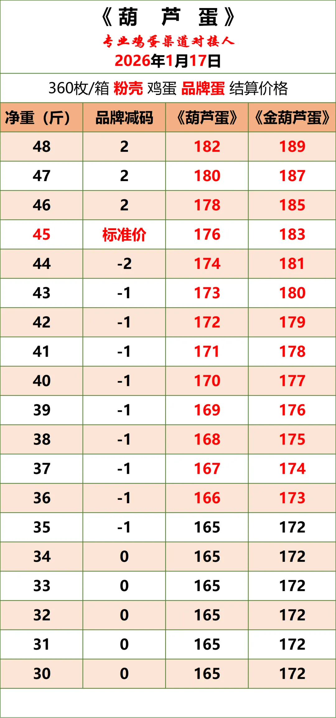 1、以上价格为《葫芦蛋》平台公示的鸡蛋含包装成交结算价(上车价),仅供与本平台渠道对接伙伴参考使用,不与其他任何报价作比较。