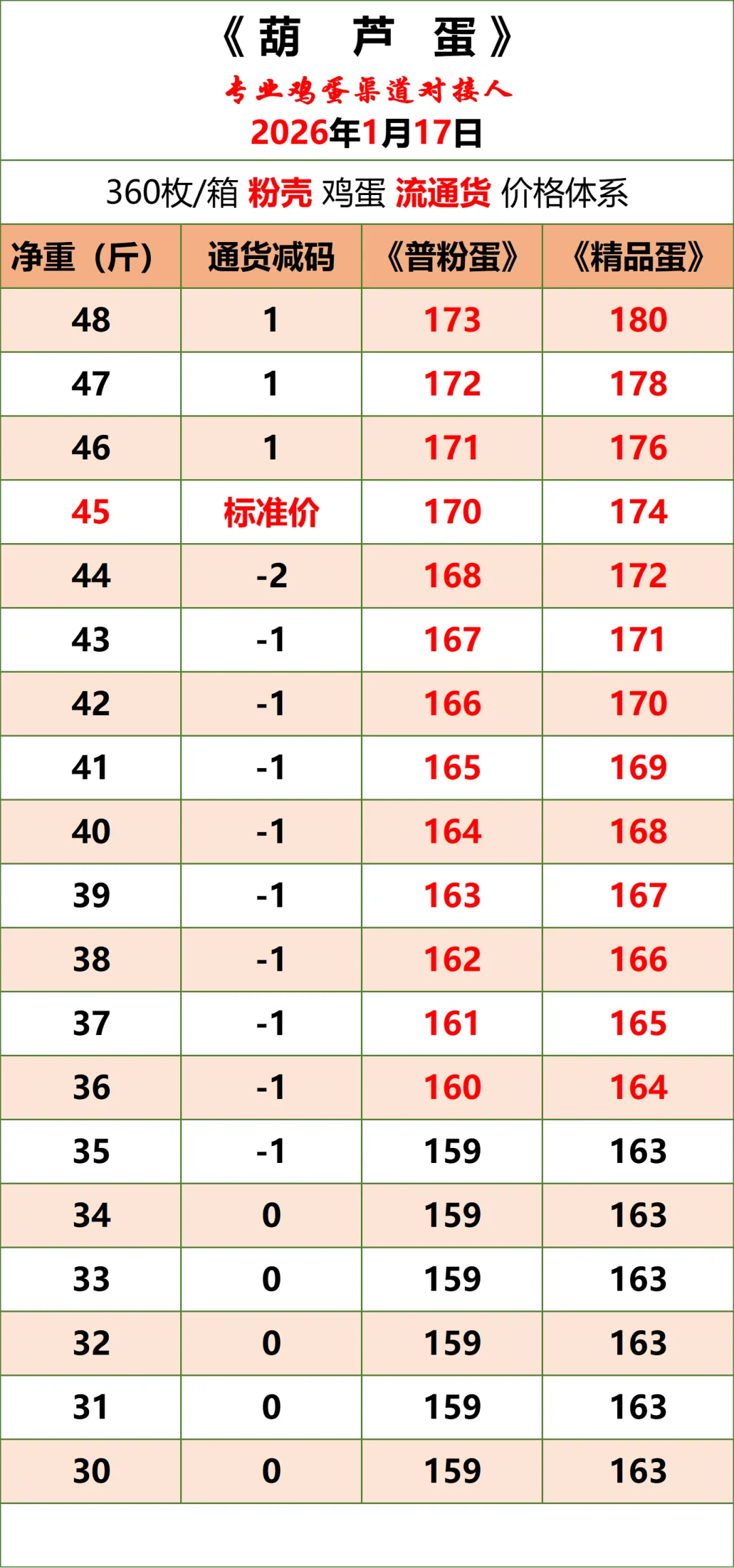 2026年1月17日《葫芦蛋》鸡蛋价格