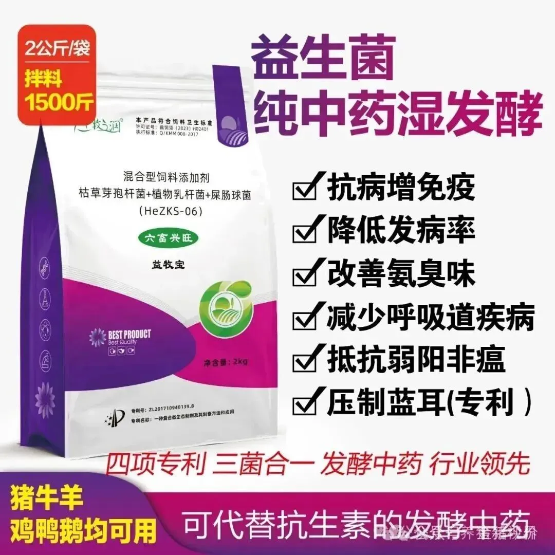 6“菌药”六畜兴旺益牧宝——益生菌+纯中药湿发酵技术,高效养殖降低发病率40%的全能型中药湿发酵料。↓ 规格:一件10袋 一袋2公斤,一袋配料1500斤, 政策:10送2 活动期间多送10%即:10送3