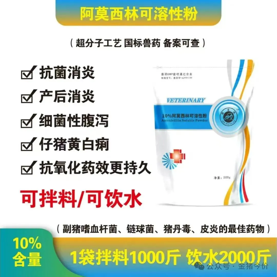 16、10%阿莫西林可溶性粉——超分析工艺,抗氧化,抗菌活性提高3倍以上。↓ 规格:一件20袋 10公斤装,一袋500克,拌料1000斤,饮水2000斤 政策:3公斤送1公斤 三件送1件