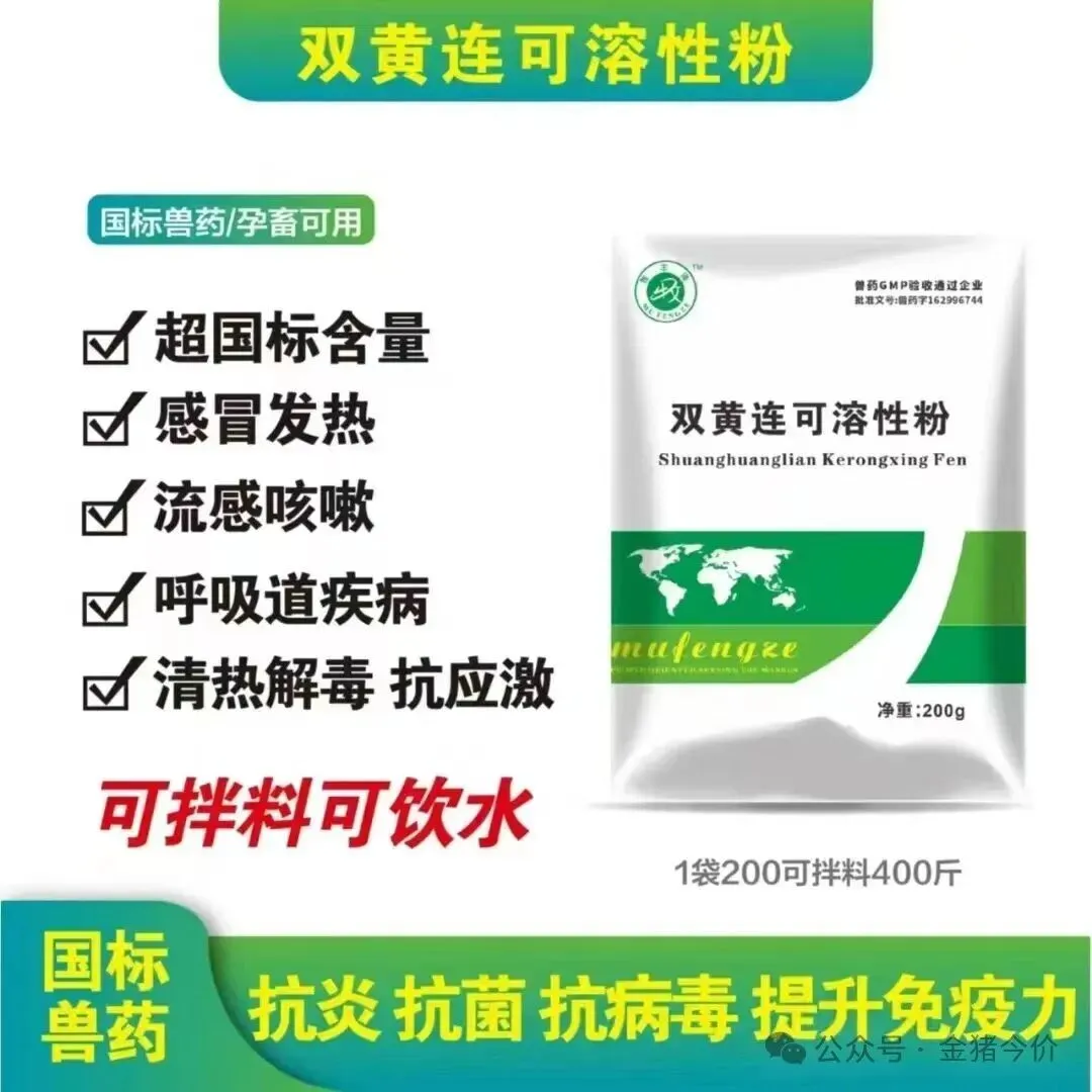 17、双黄连可溶性粉——超国标含量2.4倍,饮水拌料均可!↓ 规格:一件50袋,一袋200克,拌料500斤,饮水400-800斤 政策:5袋送1袋,一件送10袋,5件送1件