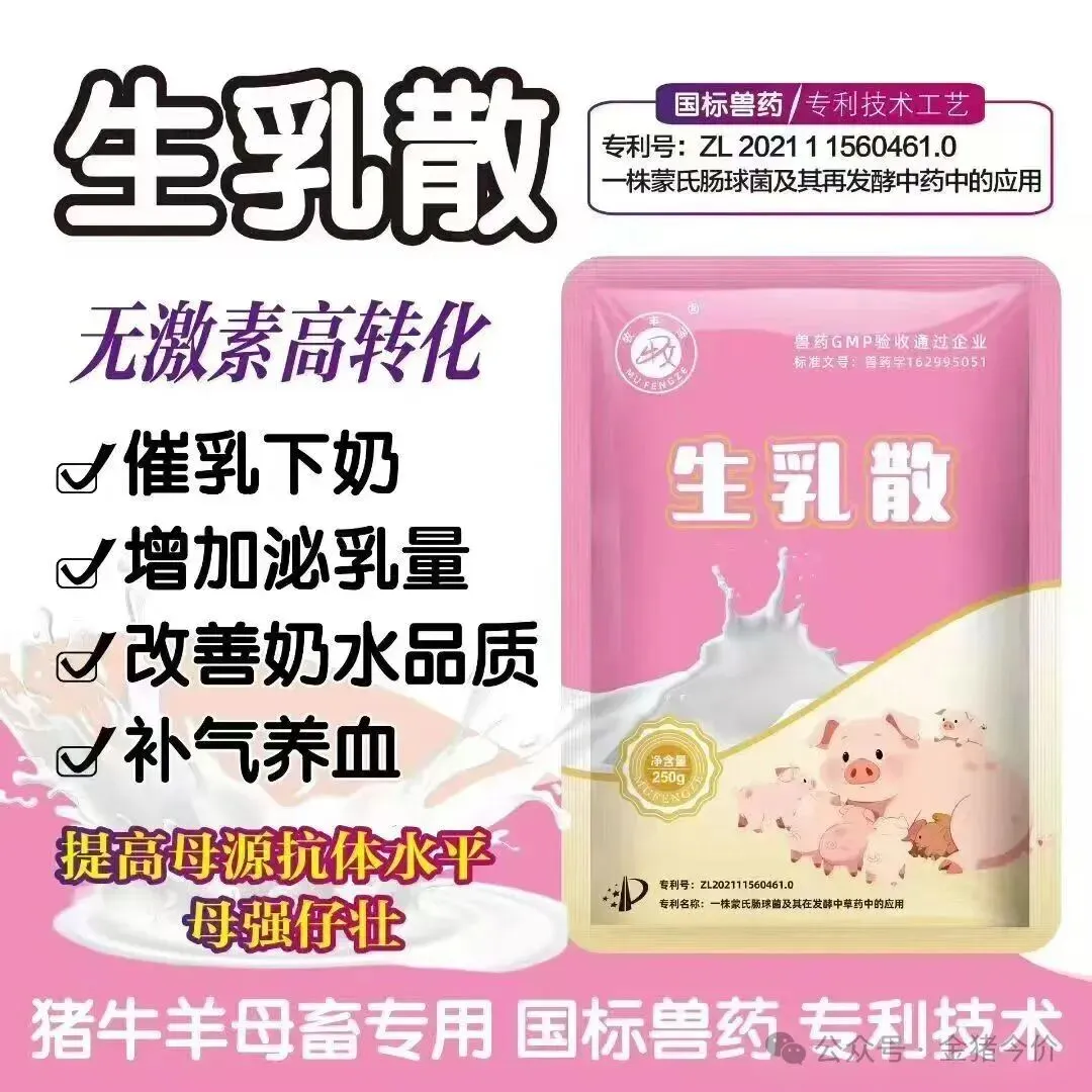 22、生乳散——催乳下奶,增加奶水,改善断奶发情。 规格:一件40袋,一袋250克,拌料250斤 政策:一件送8袋、五件送1件?