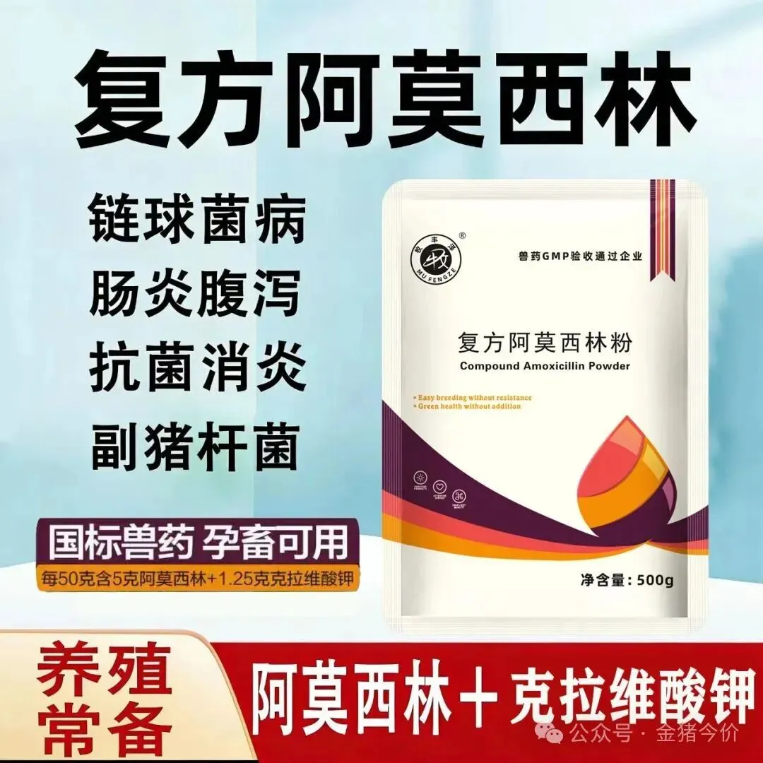 24、复方阿莫西林——含克拉维酸钾,克服耐药性问题,广谱抗菌消炎,针对副猪,链球菌,传染性胸膜肺炎,肠道炎症,母猪炎症效果显著。 规格:一件10公斤 一公斤拌料1吨,饮水2吨 政策:3公斤送1公斤 ?3件送1件