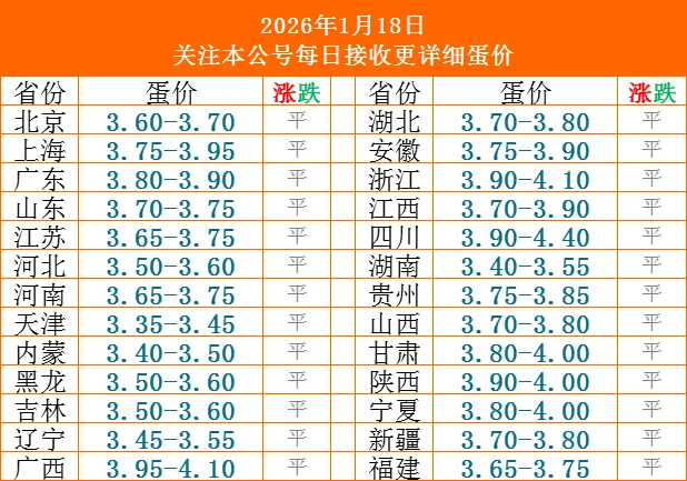 今日鸡蛋价格(2026年1月18日平稳)蛋价未来10天预兆