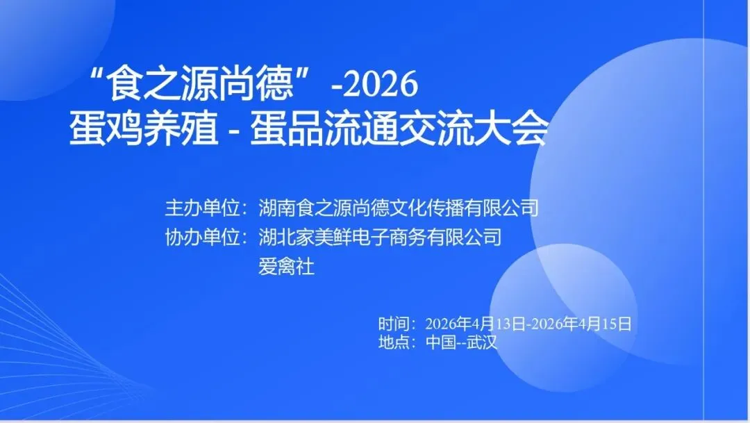 最后,欢迎大家踊跃报名参加:“食之源尚德”2026蛋鸡养殖-蛋品流通交流大会: