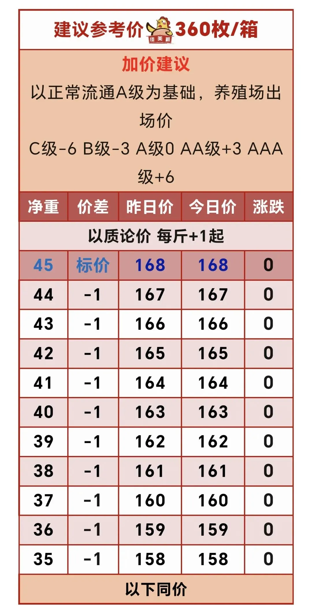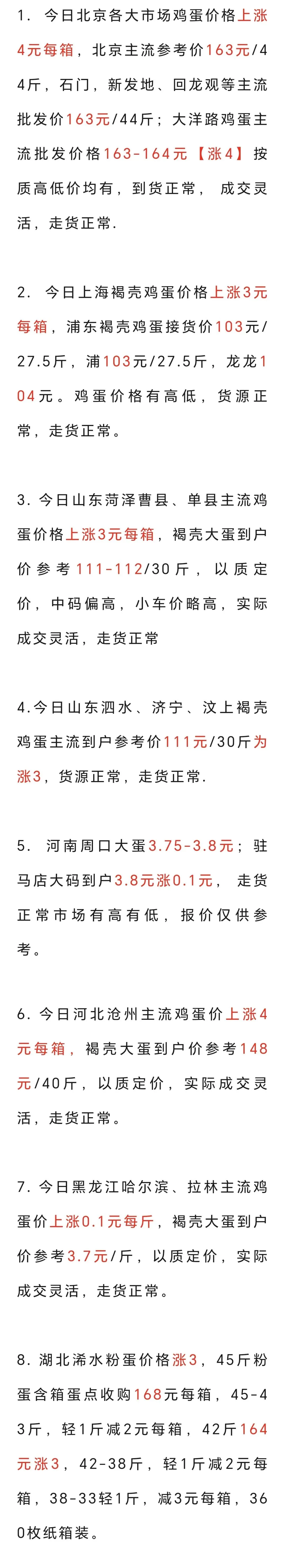 元月18日各地鸡蛋价格(涨) 养羊网 2026-01-18 元月18日各地鸡蛋价格(涨) 养羊网 2026-01-18 上一篇:又涨了!2026年1月17日全国各地鸡蛋价格行情! 下一篇:2026.1.18-今日最新猪价(牛气冲天,猪价又是满堂红!) 您可能还会对下面的文章感兴趣111: 相关文章 猪价分析:跌涨调整 近期价格更新!!! 毛绒玩偶利润怎么样? 2025年9月18日全国各地生猪价格信息